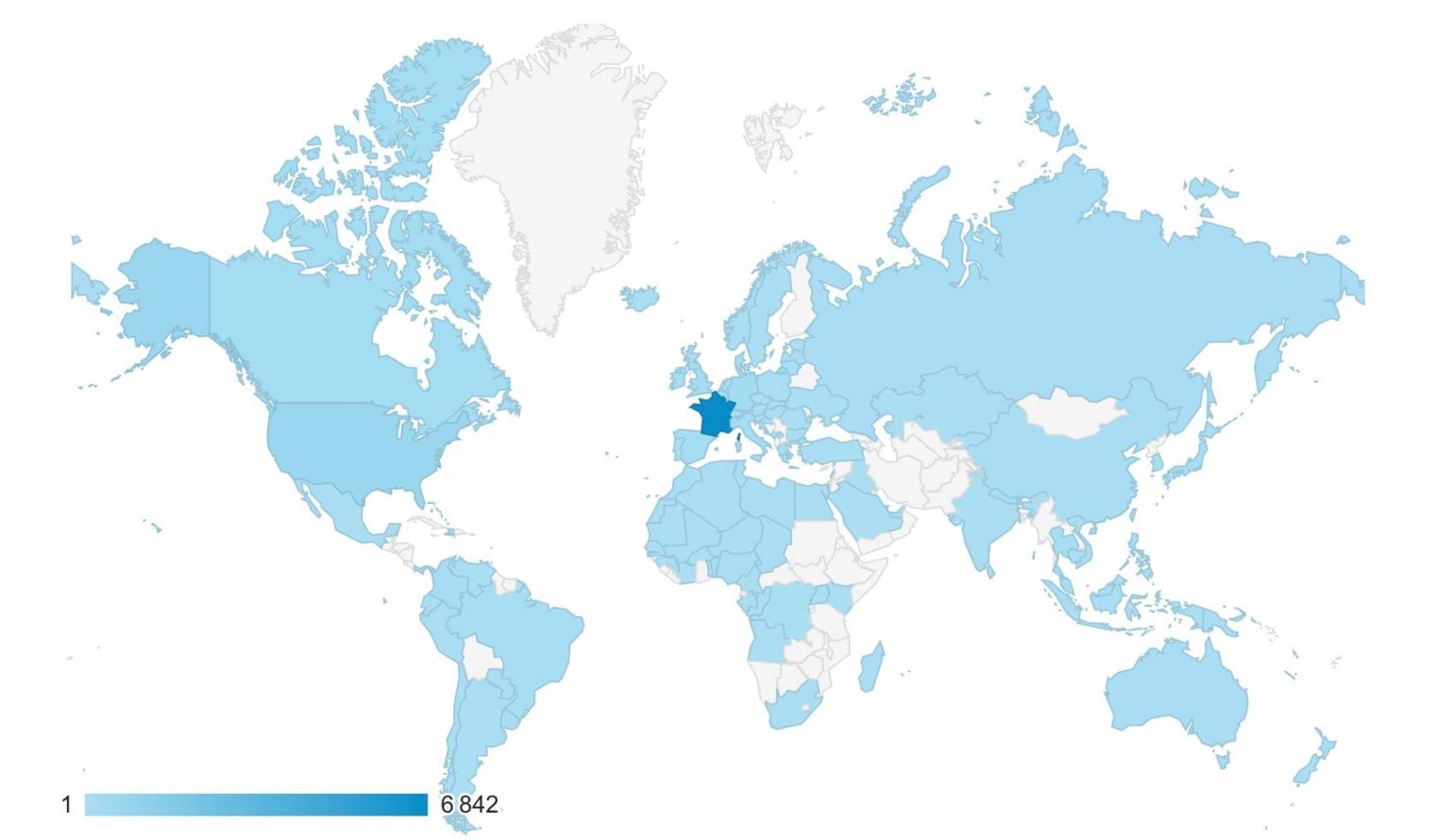 Pour information, voici la carte du monde où Addict Kite est lu et regardé : en bleu ce sont les pays qui lisent et regardent Addict Kite.