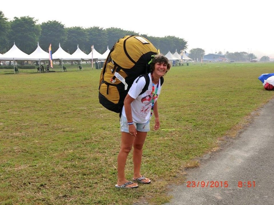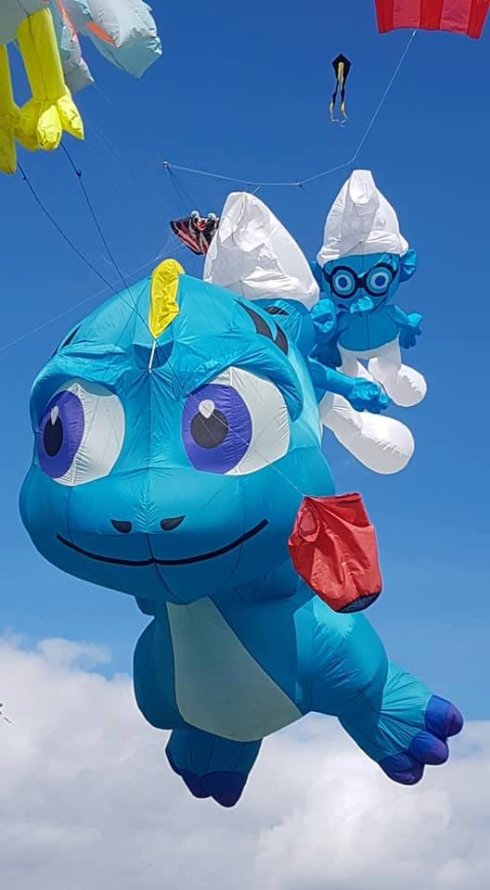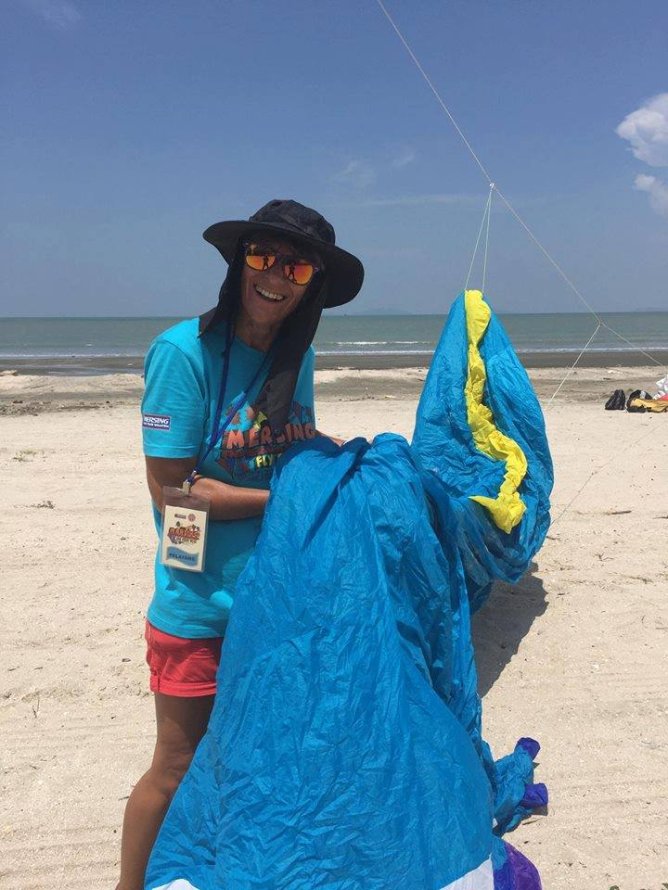 Non en fait j’essaye d’être entièrement autonome y compris pour porter mes sacs. Je limite donc la taille de mes cerfs-volants à ce que je suis capable de gérer. Je joue la sécurité, un bon ancrage, la ligne fixée avant même d’envoyer les cerfs-volants, une ligne par cerf-volant. S’il y a un gros coup de vent tout le monde sera en difficulté et donc pas forcément disponible pour un coup de main si je me suis ratée. Donc sécurité et anticipation.