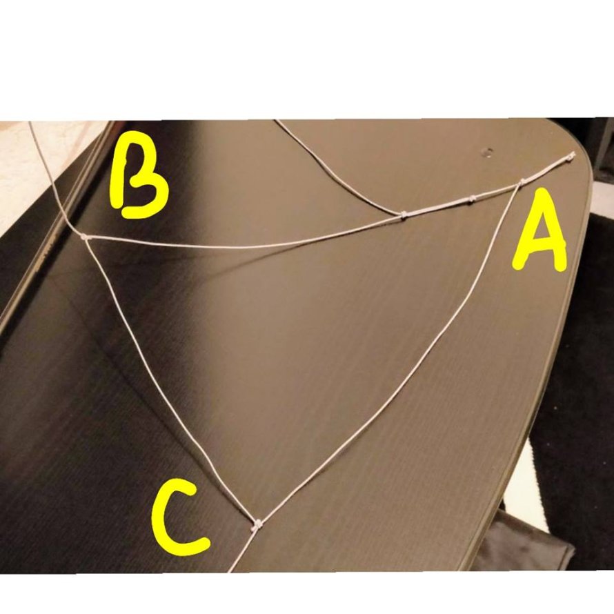 La bride A.P.D.Q doit se situer entre la bride d’incidence (B) et la bride intérieure (C) et à même distance du point de tir en A (sommet principal) ce qui doit former un triangle isocèle*.