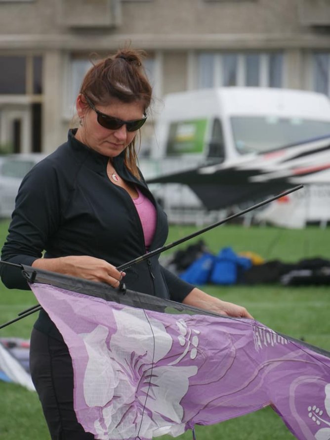 J’ai pratiqué le 4 lignes en intérieur et extérieur pendant 20 ans. En tant que mère à plein temps, trouver du temps pour pratiquer était et est toujours un défi. Mes enfants sont venus à la plupart des festivals et des compétitions et mon fils est lui-même champion national en indoor et outdoor, il me suit depuis l’âge de 3 semaines et a appris à voler auprès de nombreux voyageurs du monde entier. La passion de mes enfants pour le cerf-volant m’a permis de participer à beaucoup de festival et plusieurs fois j’ai du payer une babby-sitter pour pouvoir m’entraîner et je pratiquais l’indoor le soir après leur coucher. Je volais dans le gymnase d’une école de 21h à 23h alors qu’ils étaient à la maison avec leur père. Quand ma fille est née, je volais avec une équipe 2 et 4 lignes qui préparait les championnats du monde en France, elle était sur mon dos durant les entrainements.