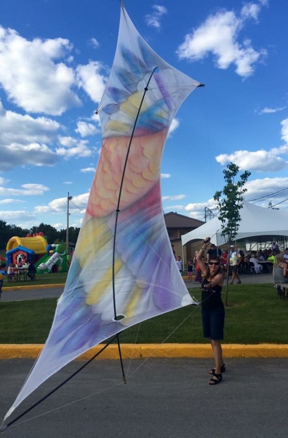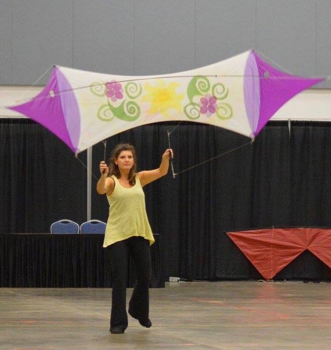 J’ai commencé le cerf-volant quand j’étais enfant , j’avais eu un Peter Powel pour mon dixième anniversaire que j’ai adoré et que j’ai piloté pendant 2 ans. Pour mes 12 ans, j’ai reçu un pack de 6 Trilbys ( train de cerf-volant pilotable) je les ai gardé jusqu’au collège. Lorsque je suis parti à Washington, j’ai rencontré les membres du club de kitesurf wings. Ils m’ont fait connaître le cerf-volant de compétition 2 et 4 lignes, cette année- là j’ai remporté ma 1ere compétition en ballet avec un 2 lignes. Par la suite, et après avoir remporté des championnats nationaux, j’ai été sponsorisée par une marque de cerf-volant. Je n’ai jamais cessé de voler, d’enseigner et de conseiller depuis plus de 25 ans.