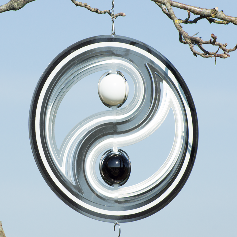 Le mobile YIN YANG 300 noir et blanc est en acier inoxydable et dispose de deux boules de verre. En combinaison avec les boules de verre, ils produiront un fascinant effet de lumières et de couleurs. Dès le moindre souffle de vent l éolienne tournera sur elle-même en apportant une harmonieuse atmosphère.