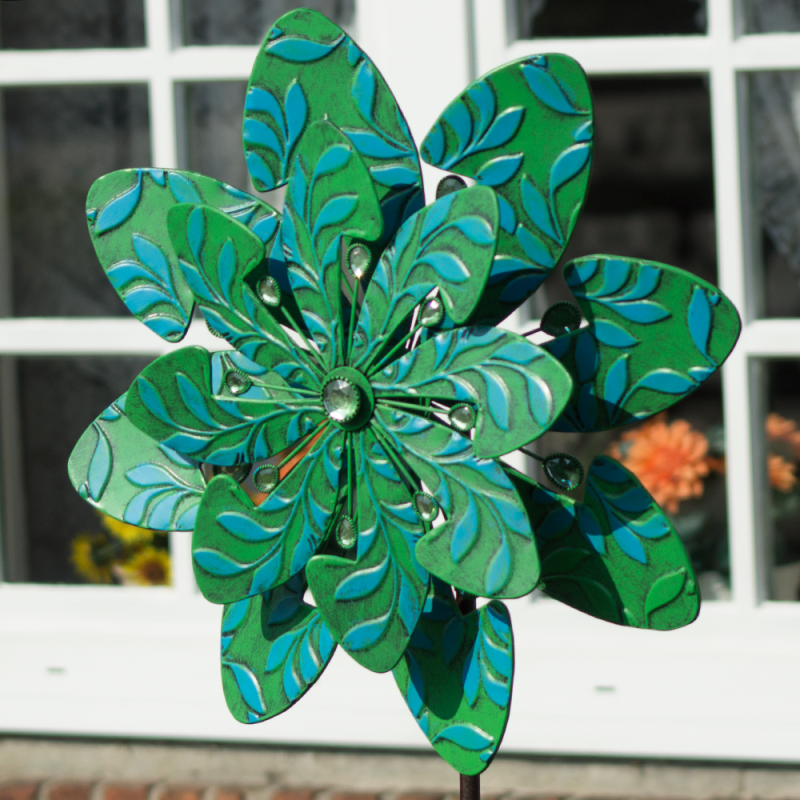 Elle attirera tous les regards dans votre jardin, dans vos parterres de fleurs, sur votre terrasse ou votre balcon. Les 2 hélices tournant en sens opposés provoqueront un superbe effet optique. La couleur des pétales des fleurs, dans les tons bleu turquoise, créera une atmosphère des caraïbes directement chez vous.