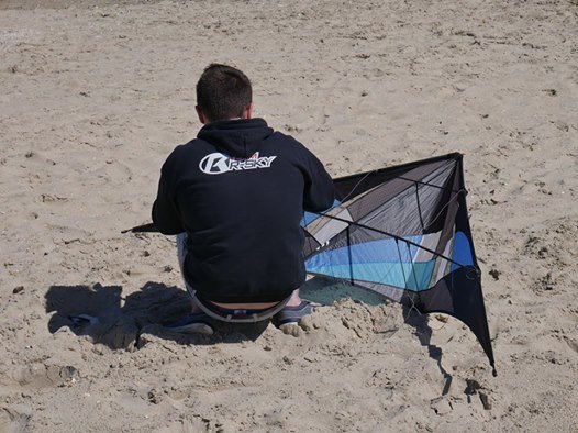 Avec plusieurs cerfs-volants de la gamme R-sky sans forcément choisir une gamme en particulier. (N3E, UNIK) le choix final s’est fait sur la plage.