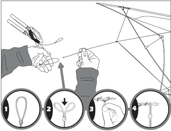Voici quelques nœuds couramment utilisés en cerf-volant acrobatique à 2 ou 4 lignes de pilotage :