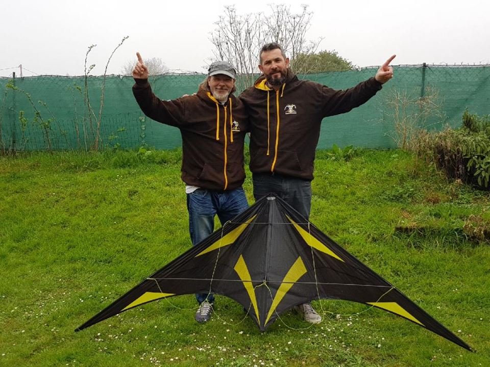 Aujourd’hui nous sommes allés voir la Paire Parthn’air composée de 2 pilotes extrêmement confirmés. Christophe et Laurent sont de très bons pilotes qui évoluent en individuel mais également en team avec leurs 2 ème place au championnat du monde avec le team de cerfs-volants folie. Une expérience qui risque de les hisser vers le haut du classement avec leur forte connaissance du cerf-volant. Alors attention à cette paire qui va sûrement faire le spectacle et le show.