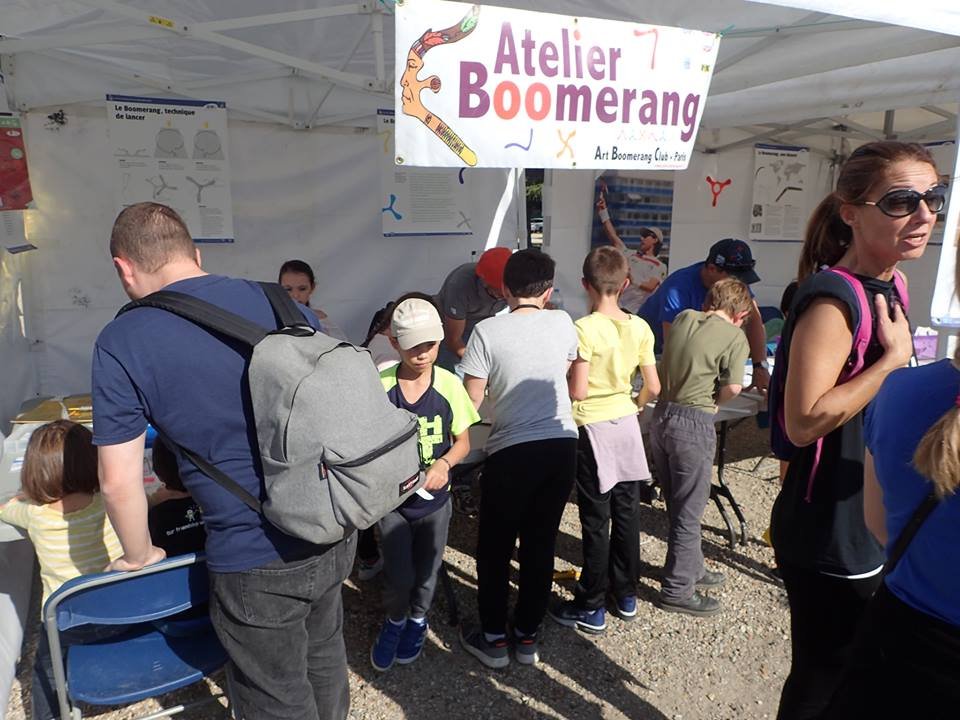 Il y avait aussi un atelier boomerang où l’on pouvait confectionner des boomerang et être initier à leur technique.