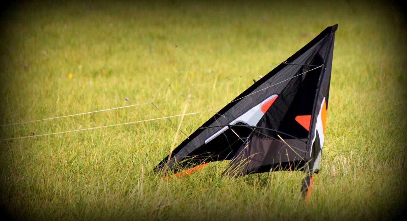 Posé sur ses 2 pointes face à moi au sol , ce kite a une présence, du à son panneautage très bien trouvé et bien monté (avis perso bien sûr).
