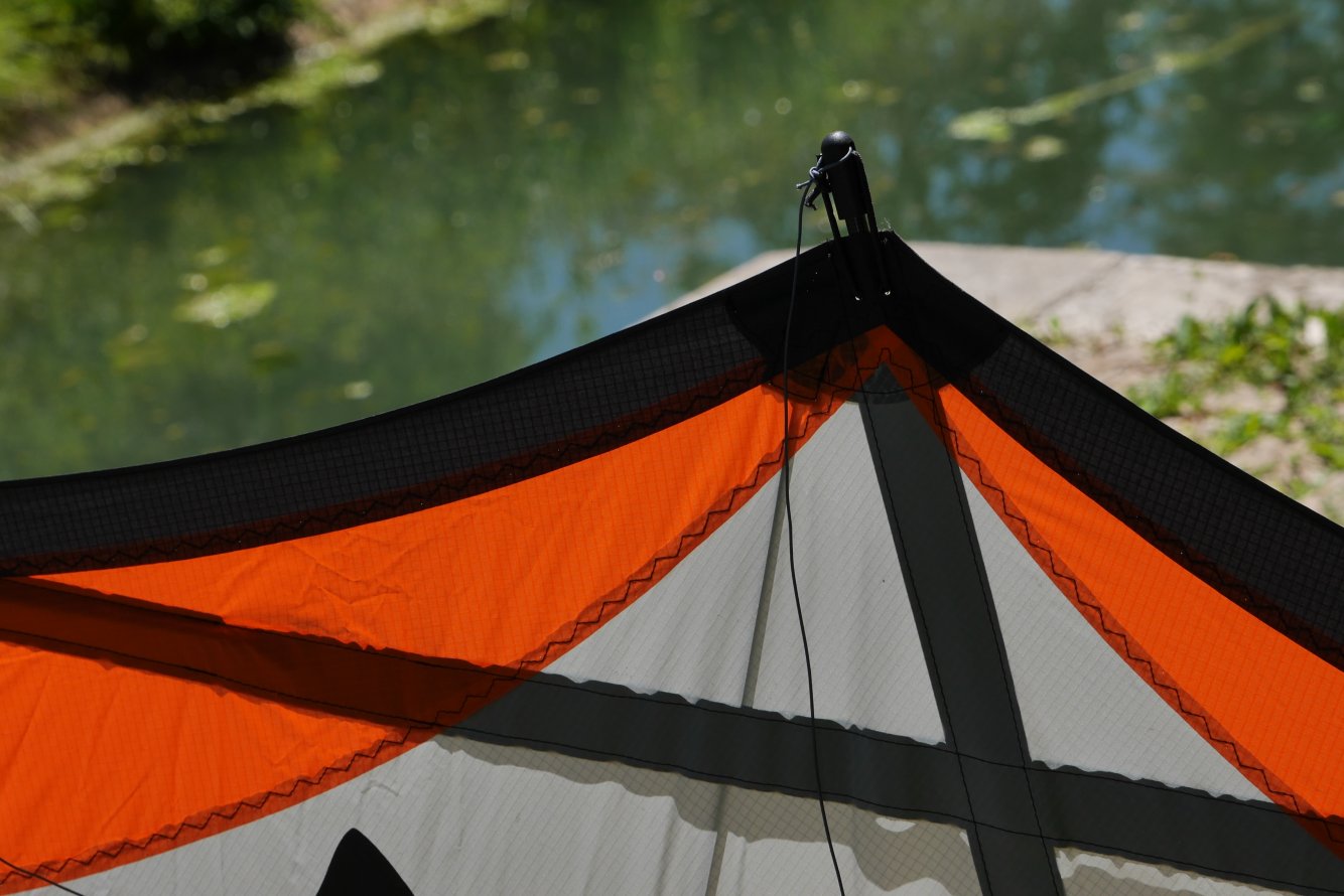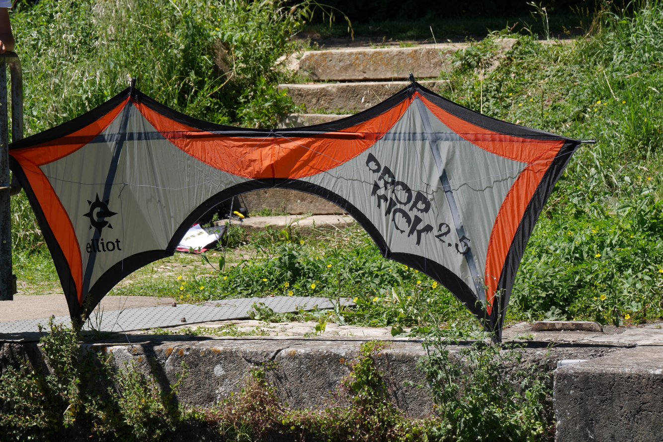 Le vol est très agréable, rassurant, il encaisse bien les méchantes rafales, les virages peuvent être larges ou serrés. Le premier vol demande quand même de la compréhension pour piloter un 4 lignes, oui, rien à voir avec le cerf-volant 2 lignes. Les lignes droites tractent bien sans trop faire mal aux bras, les stops sont propres et la pendule est facile à réaliser. La marche avant ou arrière est une formalité, nous n’avons pas réussi à passer d’axels mais peut-être qu’avec un peu de travail ils seront possibles. La précision est vraiment son domaine de prédilection et cette discipline est un pur régal pour les pilotes qui recherchent cette sensation.