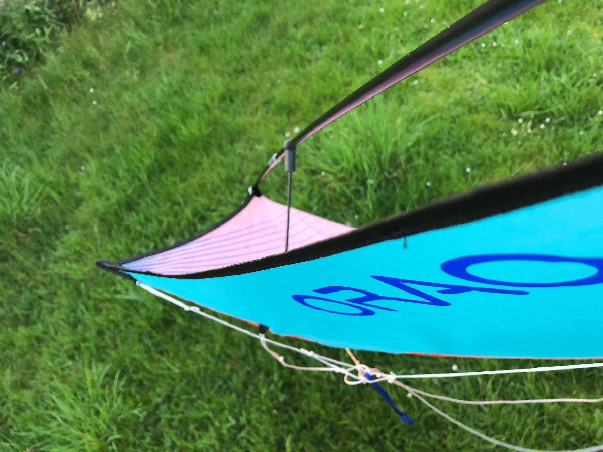 L’Orao est livré avec ses lignes et poignées, le tout pour 60€, impressionnant!!! Les lignes disposent d’un code couleur permettant de ne pas se tromper lors du montage (bride du kite grise avec gaine grise de la ligne etc.), ce qui aide grandement pour les débutants.En rechange il y a 2 wiskers. Les poignées sont également de couleurs différentes pour permettre de ne pas se mélanger. Elles sont assez confortables mais « lourdes ».