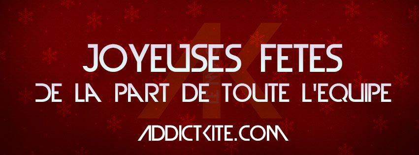 Et bien voilà, la fin de l’année a sonné pour l’équipe d’Addict Kite. Toute notre team se joint à moi pour vous souhaiter de très bonnes fêtes de fin d’année. Nous allons prendre quelques jours de congés durant les fêtes.